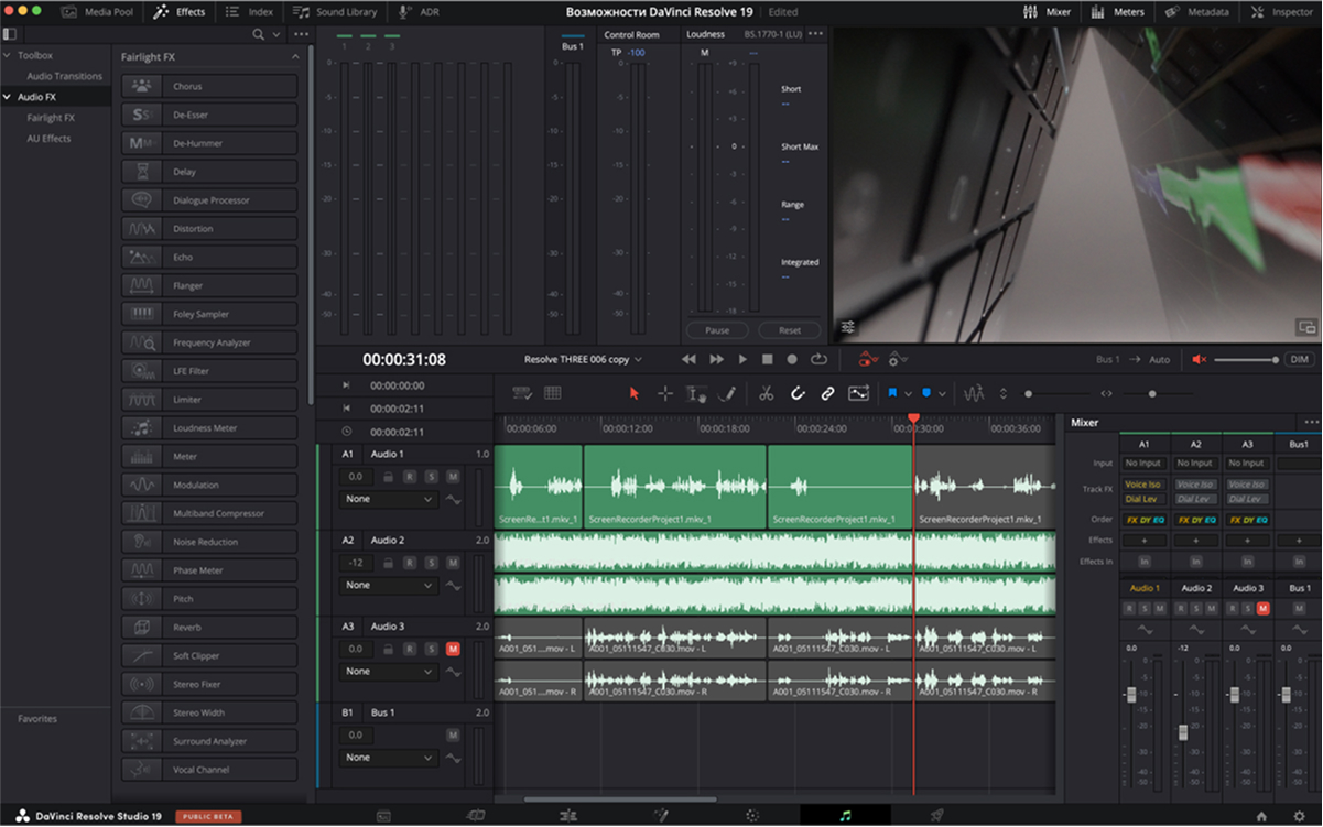 чистить звук на видео с помощью встроенных AI-инструментов DaVinci Resolve.